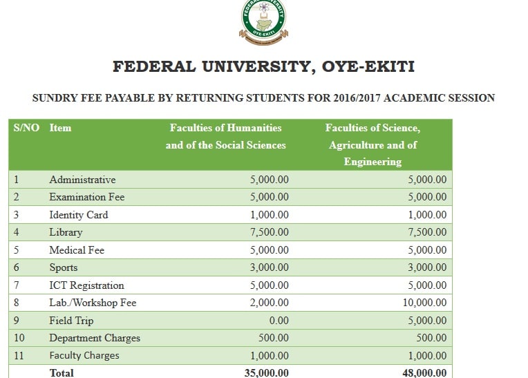 - Fishery Sciences, Biology, Microbiology, Botany, Zoology, Computer Science, Chemistry, Physics, Mathematics and Statistics: ₦115,750